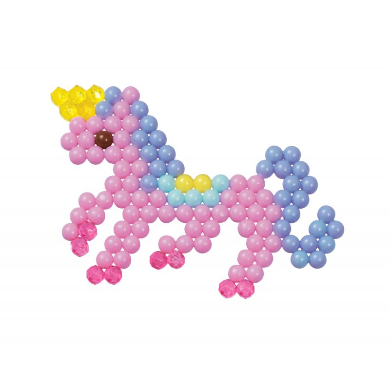 Aquabeads to kreatywne zestawy wielobarwnych koralików, dzięki którym dzieci mogą tworzyć najróżniejsze, trwałe dzieła. Wystarczy wybrać szablon i użyć specjalnie zaprojektowanej podkładki, aby ułożyć koraliki w odpowiednich miejscach, a następnie spryskać je wodą, by koraliki w magiczny sposób trwale się ze sobą spoiły. Przy tworzeniu kolorowych dzieł można posługiwać się gotowymi szablonami wielokrotnego użytku, albo komponować swoje własne wzory.