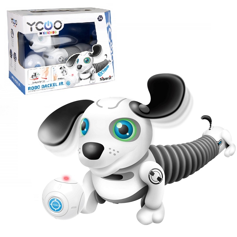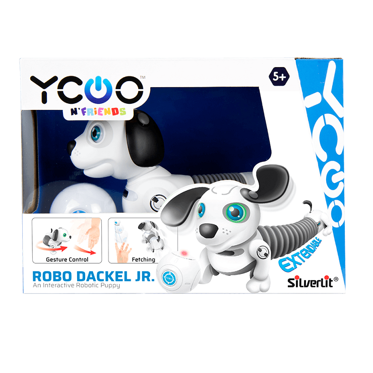 Robo Dackel junior jest interaktywnym szczeniakiem robota od Sivlerlit, który wygląda jak słodki jamnik. Piesek rośnie, jeśli go głaskasz! Może rozciągać ciało nawet o 70%. Dackel ma świecące oczy LED i jest wyposażony w różne czujniki. Reaguje na gesty dłoni, za pomocą których możesz mu wykonywać różne sztuczki. Odpowiada również, jeśli go pogłaskasz, a  także może za tobą podążać. Jeśli rzucisz mu piłkę, która jest dołączona do zestawu Dackel podąży za nią.