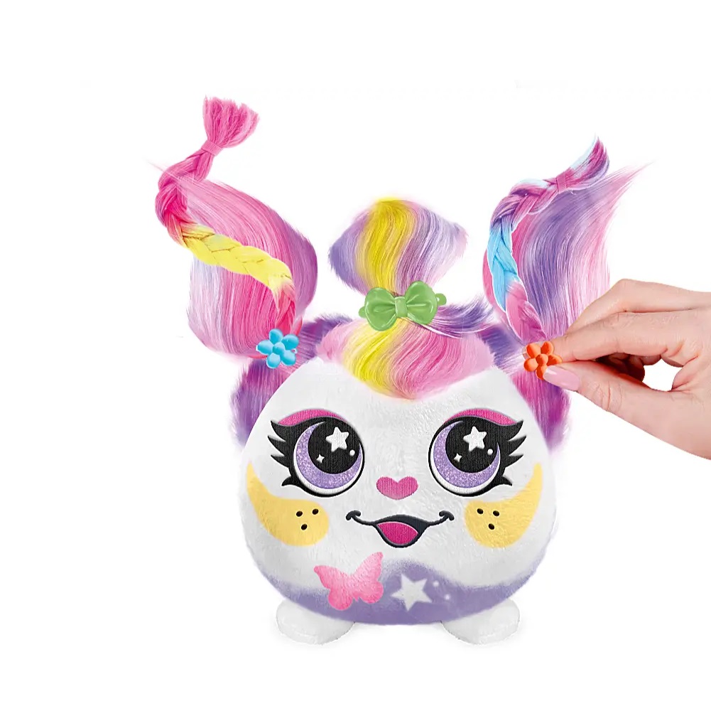 Pluszak wielokrotnego użytku. Po zabawie wystarczy go wyprać – i można zaczynać kreatywną zabawę od nowa! W zestawie znajdują się akcesoria, dzięki którym można tworzyć fantazyjne fryzury i personalizować wygląd pluszaka. Specjalna pompka z markerami pozwala tworzyć kolorowe wzory i wyjątkowe stylizacje w prosty, bezpieczny sposób.