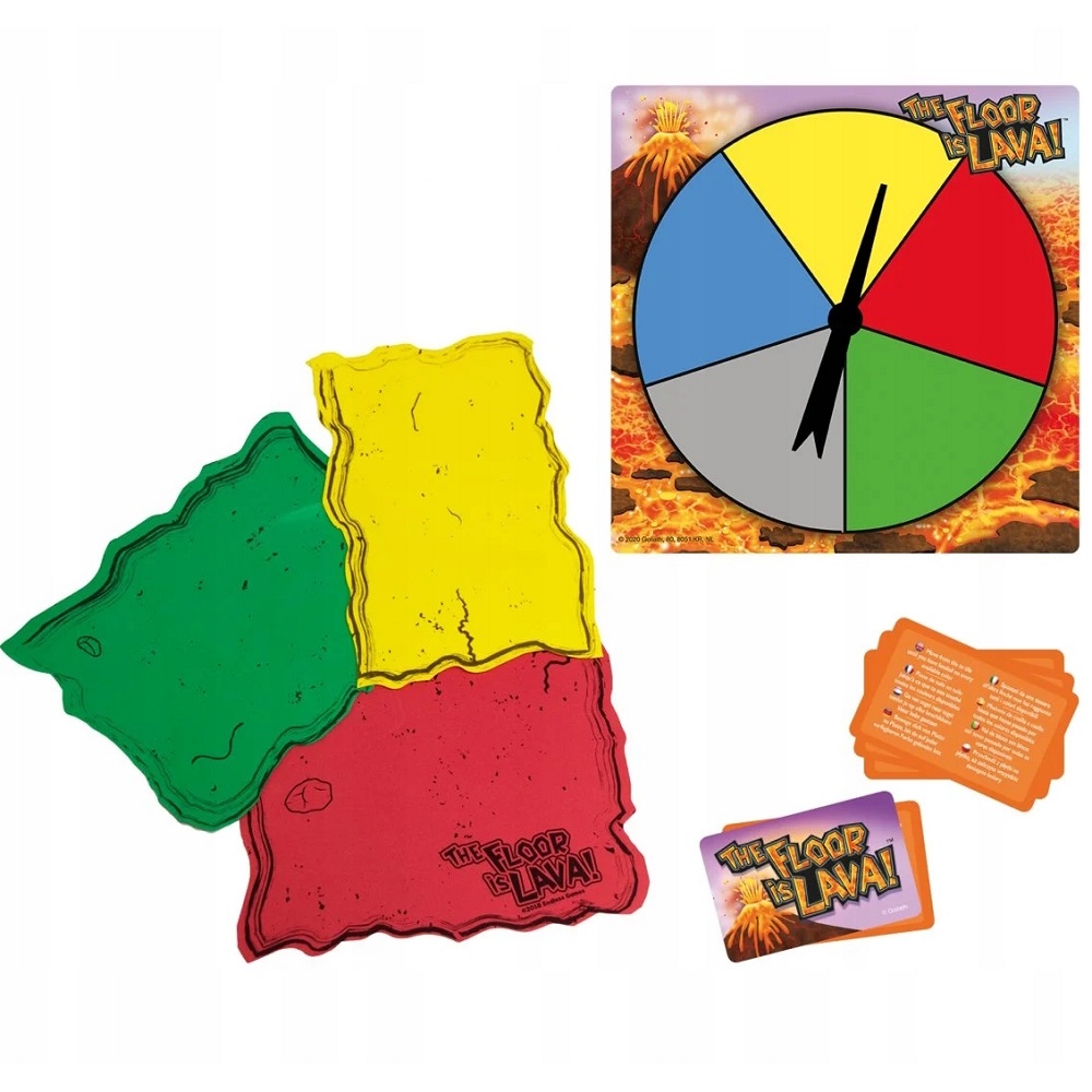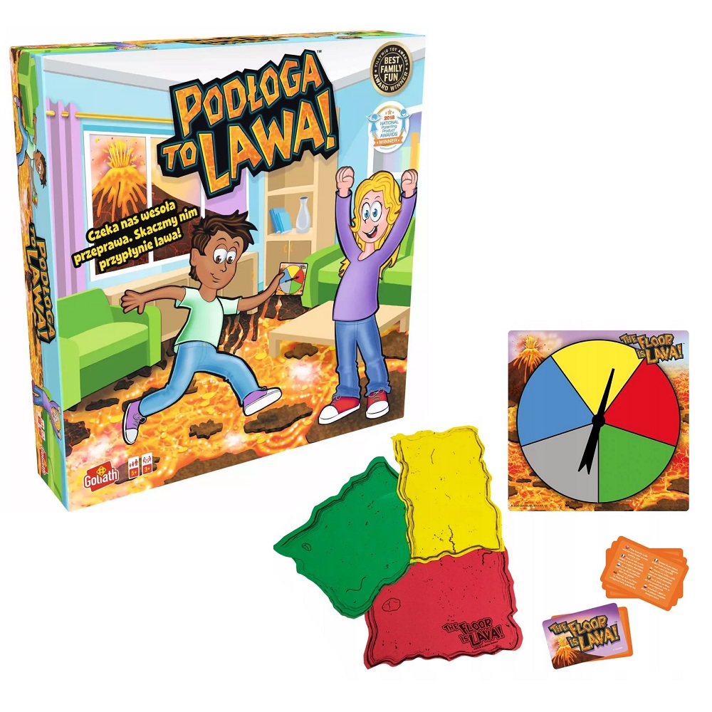 Znana i lubiana od pokoleń gra, w której uciekamy przed parzącą podłogą. W grze Podłoga to Lawa gracze muszą wyobrazić sobie podłogę jako roztopioną, gorącą lawę. kto utrzyma się na bezpiecznym lądzie najdłużej? Koło losujące wskaże kolor kamienia, który chroni przed wpadnięciem do lawy. Skacz i dostań się na to pole nim zrobi to ktoś inny! Podłoga to Lawa to gra rodzinna łącząca w sobie aktywność fizyczną, wyobraźnię i świetną zabawę! Pamiętaj … PODŁOGA PARZY!