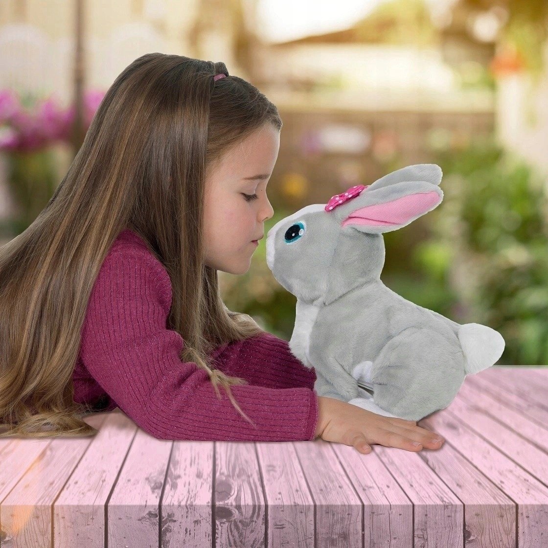 Królik skacze jak prawdziwy, wydaje odgłosy oraz rusza uszkami i pyszczkiem. Ma mięciutkie, miłe w dotyku futerko oraz przeurocze oczka.