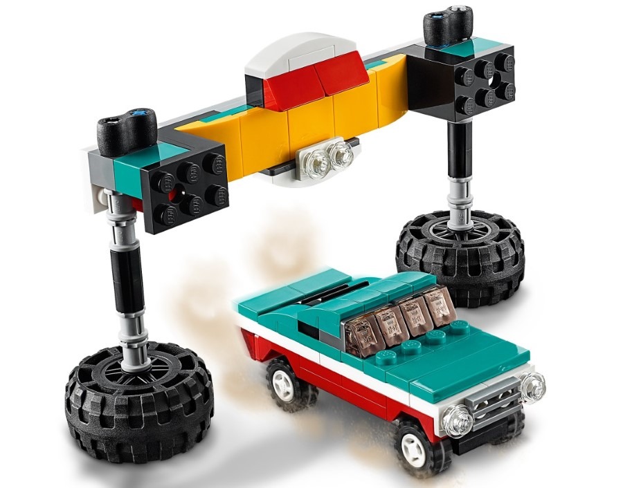 Emocjonujący zestaw konstrukcyjny LEGO Creator 3 w 1 Monster truck rozpali w dzieciach fascynację tymi ogromnymi pojazdami. Maluchom spodoba się przejeżdżanie po małym samochodzie osobowym i innych przeszkodach zielono-żółtym monster truckiem z działającym zawieszeniem. Nieograniczona kreatywność Zestaw LEGO Creator 3 w 1 umożliwia zbudowanie trzech różnych modeli do zabawy. Dzieci mogą złożyć monster trucka, a potem przebudować go na dragstera lub samochód muscle car przejeżdżający przez linię mety. Mogą też stworzyć własną konstrukcję. Ta nietuzinkowa zabawka konstrukcyjna zachęca maluchy do pomysłowej zabawy i doskonale nadaje się na prezent z dowolnej okazji. Rozpoznawalne modele prawdziwych pojazdów Zestawy LEGO Creator 3 w 1 oferują dzieciom szczegółowe i realistyczne modele, które zachęcają do pomysłowej zabawy. Te niezliczone możliwości budowania i zabawy pomagają rozwijać kreatywność dzieci w każdym wieku. Ciekawe, inspirujące zestawy świetnie sprawdzą się jako dodatkowe prezenty świąteczne czy urodzinowe.