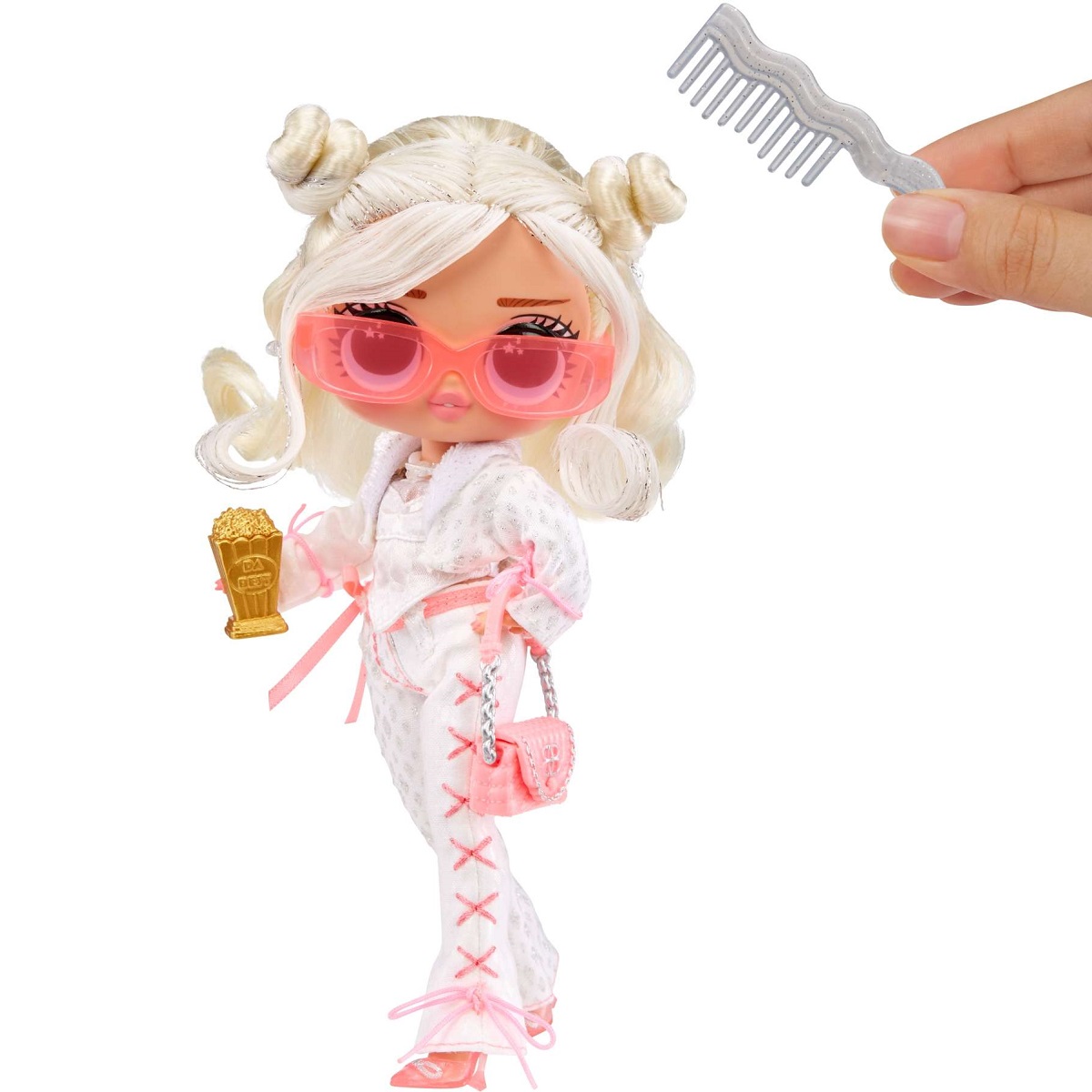 Poznaj LOL Tweens Marilyn Star, która uwielbia występować i wcielać się w coraz to nowe role. Wszyscy jej znajomi wierzą, że pewnego dnia zostanie wielką gwiazdą. Jest starszą siostrą ślicznej lalki LOL Surprise, Leading Baby. Ciesz się długimi godzinami spędzonymi na czesaniu, przebieraniu i stylizacji. Marilyn Star w swoim białym kostiumie i blond lokami w każdym momencie jest gotowa, by kroczyć po czerwonym dywanie.