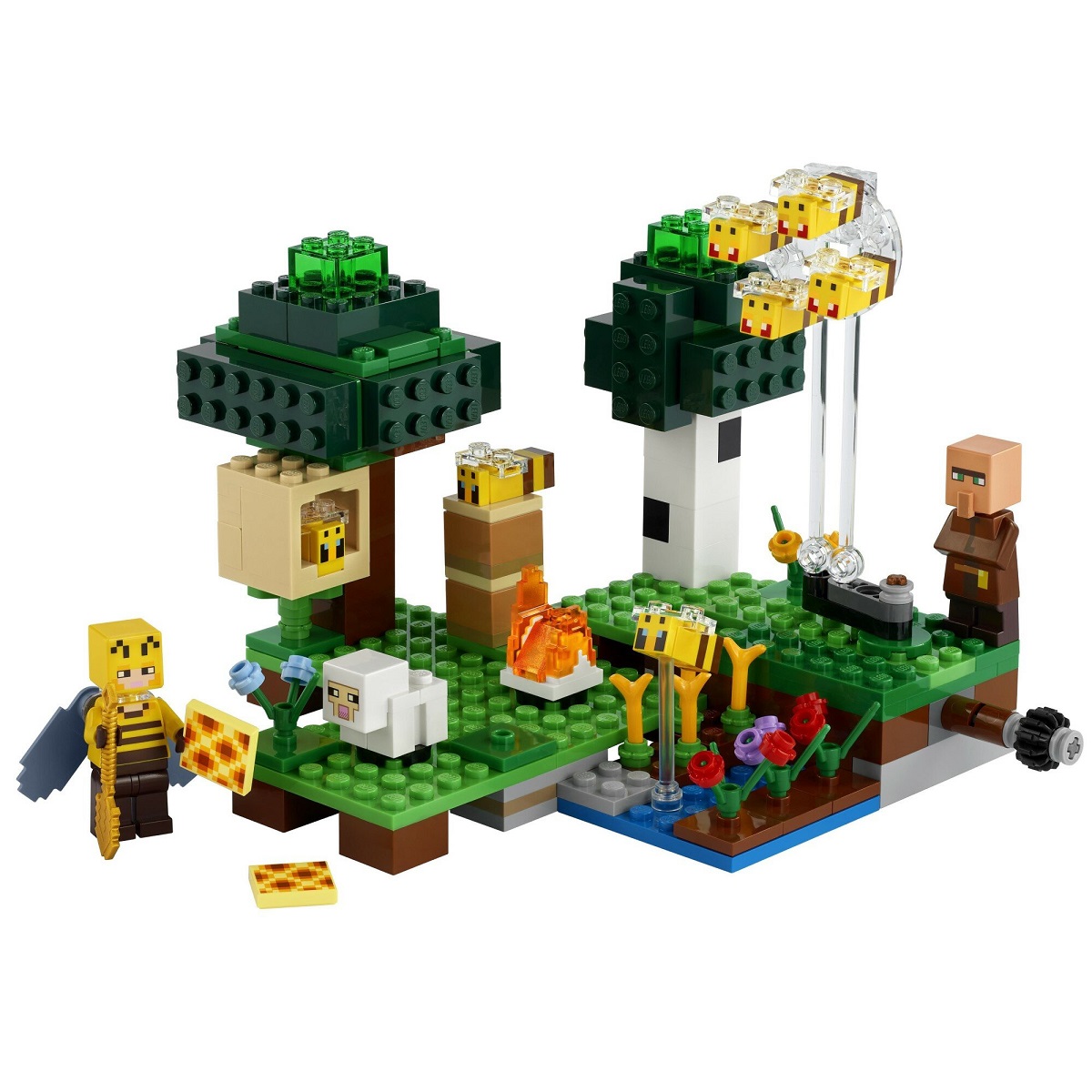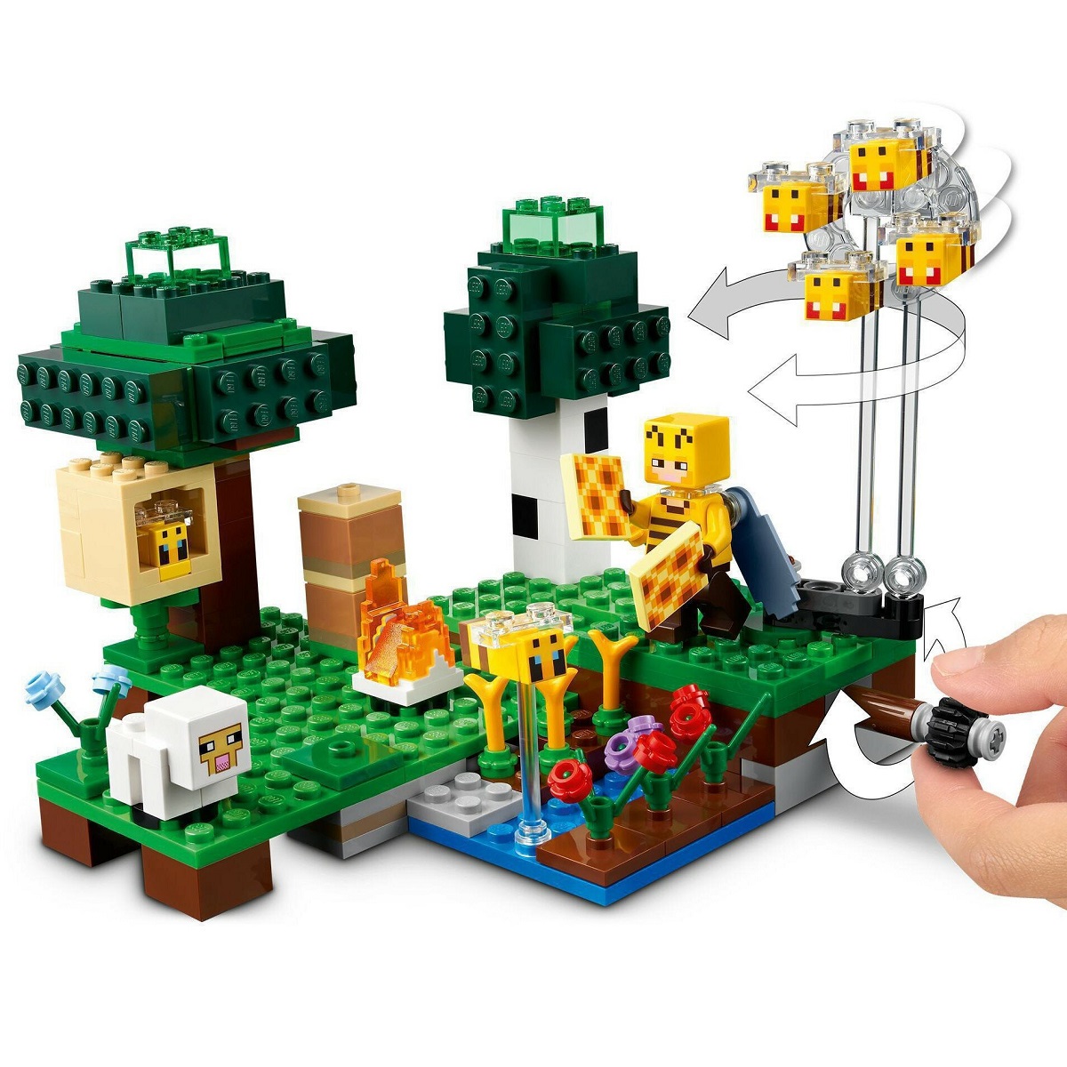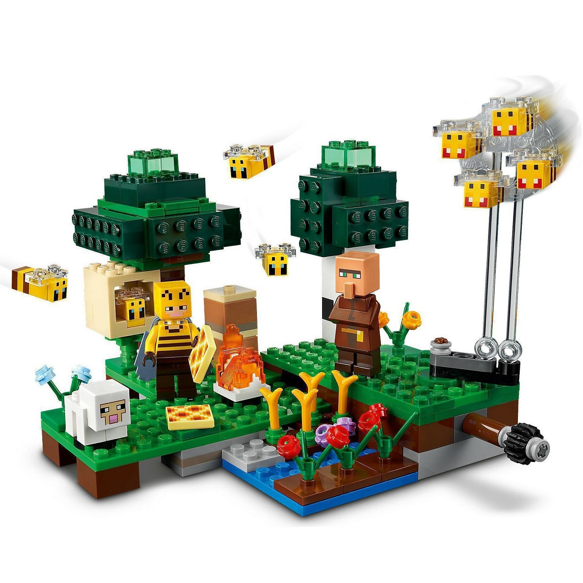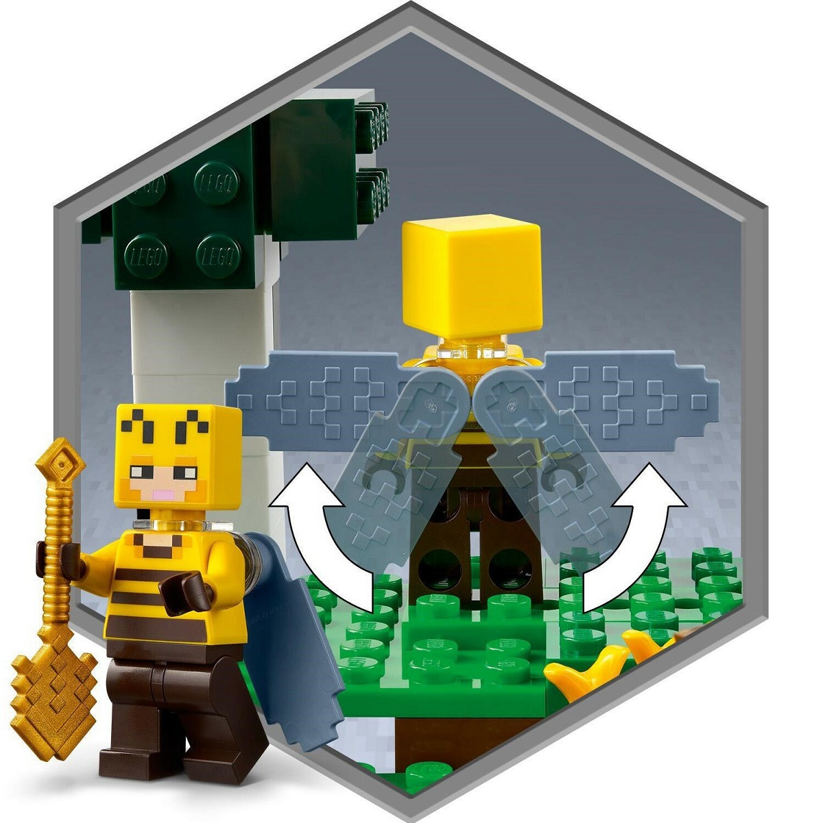 W zestawie Lego® Minecraft™ 21165 Pasieka aż roi się od możliwości odgrywania ról. Razem z przyjaznymi pszczołami dzieci mogą pomóc rosnąć kwiatom i roślinom, a potem zajrzeć do ula i zrobić miód. Nie jest to jednak takie łatwe. Młodzi konstruktorzy będą również musieli powstrzymać rój wściekłych pszczół, które latają w kółko po całej farmie, atakując owcę i przerażonego osadnika. Ten ekscytujący, wciągający i wszechstronny zestaw edukacyjny zawiera wiele innowacyjnych i praktycznych funkcji. W zestawie figurki skrzydlatej pszczelarki, osadnika i ośmiu pszczół – zabawę można więc rozpocząć natychmiast. Dzieci mogą dołączyć do czterech przyjaznych pszczół i razem z nimi pomóc urosnąć kwiatom i roślinom, a także udzielić wsparcia pszczelarce, która próbuje przepędzić cztery wściekłe pszczoły latające w kółko po całym gospodarstwie oraz straszące owcę i osadnika.