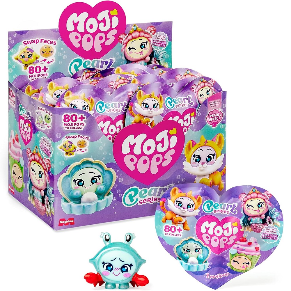 Mojipops powracają! Odkryj nową serię Pearl z ponad 80 figurkami do kolekcjonowania i zdobądź specjalny zestaw Sea Club z perłowym wykończeniem. Czy znajdziesz ultra rzadką Mermaid Princess? To księżniczka syrena! Każdy przedmiot, zwierzę, roślina lub jedzenie może być Mojipopem. Odwróć jej buźkę, aby zmienić wyraz twarzy i wymyślaj super zabawne historie. Mojipopy są tutaj… są wszędzie!