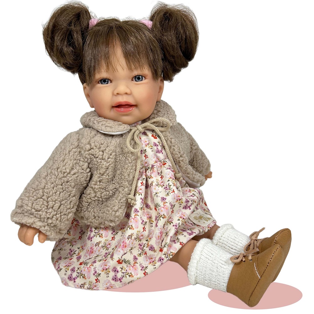 Lalka hiszpańska Susi to brunetka ubrana w piękną sukienkę w kwiatki oraz podkolanówki. Uroku dodaje piękna futerkowa kurteczka – kubraczek. Włoski lalki upięte są w dwa kucyki. Laleczka ma również ubrane buciki. Nie ma większej radości niż dostać wymarzoną lalkę, która jest jak żywa.