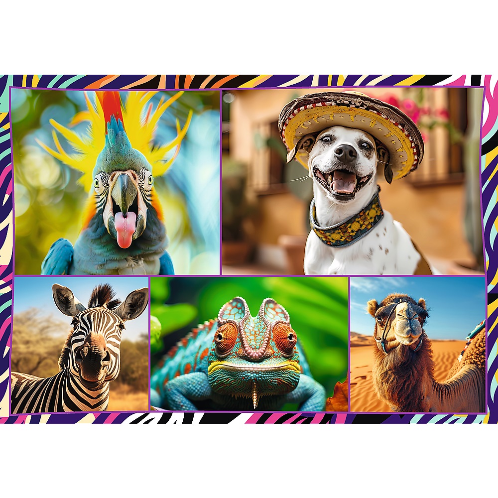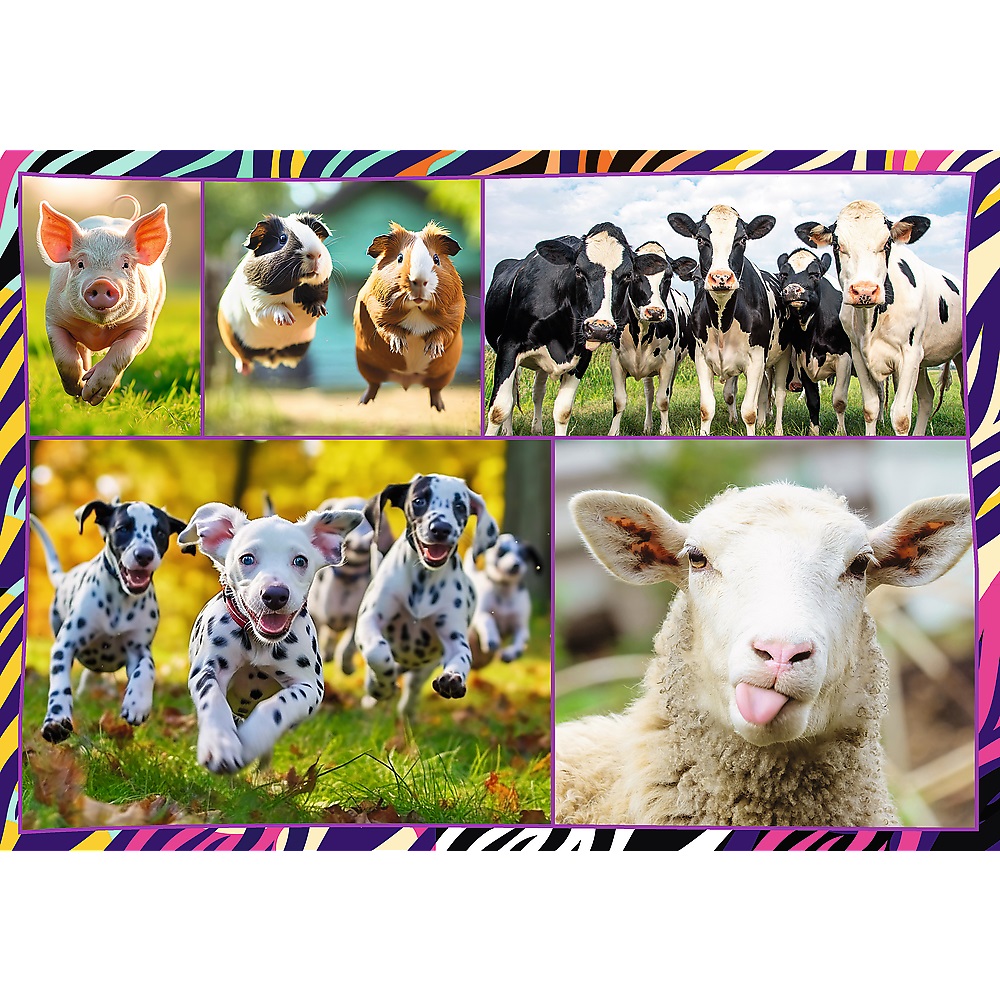 Zabawne zwierzaki to cztery układanki zawierające po 250 elementów, przedstawiające kolaże pełne śmiesznych zwierzaków. Każda z układanek pozwoli stworzyć obrazek o wymiarach 33,9 x 23,9 cm. Precyzyjnie wykonane i idealnie dopasowane elementy oraz wysoka jakość nadruku sprawiają, że układanie jest łatwe i przyjemne, a sam obrazek po sklejeniu specjalnym klejem do puzzli Trefl może stać się wspaniałą ozdobą dziecięcego pokoju. Układanie puzzli, to twórcza i rozwijająca aktywność dla dziecka i całej rodziny!